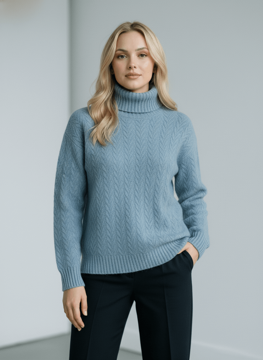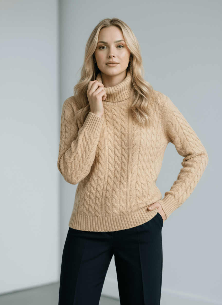Soft, warm, and easy to style, this turtleneck knit sweater is designed to keep you comfortable without added bulk. It features a breathable drape that follows the natural shape of the body, making it suitable for everyday wear from morning to night.