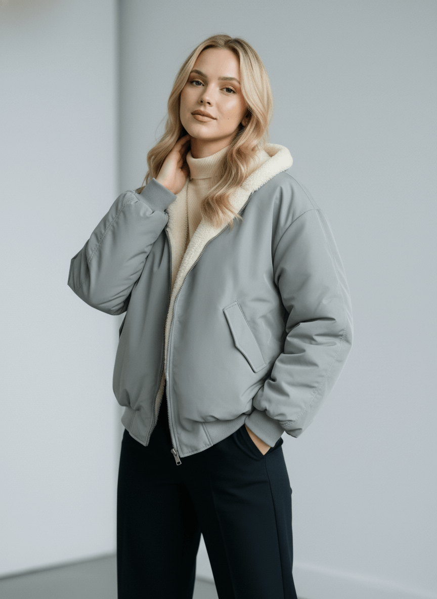Warm, practical, and easy to wear, this short winter jacket helps keep you comfortable on cold, windy, or rainy days. It features a padded lining and a protective hood, pairing well with both casual and smart outfits for a clean, modern winter look.